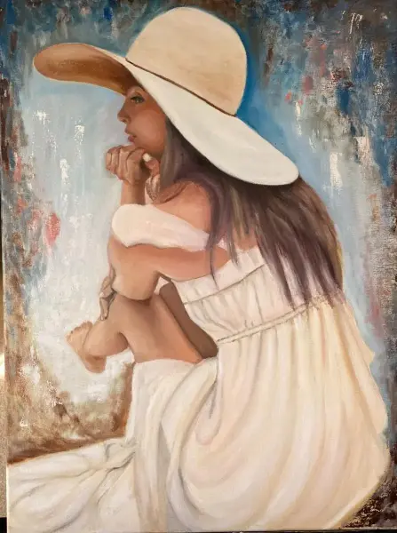 „Legutóbb épp rendelésre festettem egy portrét egy elég rossz minőségű, régi fényképről. Sokat kínlódtam vele, mire végre kialakult, két mentor is segítette a munkámat sok-sok jótanáccsal.”