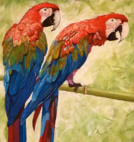 Ebben a fejezetben ennek a papagájos pasztellképnek az elkészítését követheted velem együtt, a kezdetektől egészen az utolsó krétanyomig.